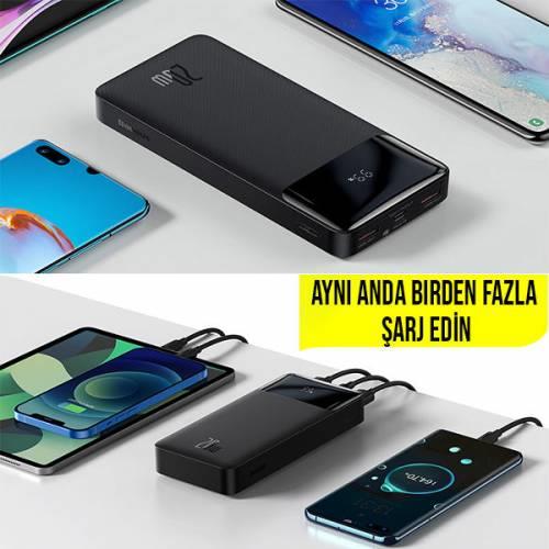 1134161Baseus Dijital göstereli Ultra Hızlı 20W 20000 mAh Powerbank İphone Samsung Xiaomi PowerbankCihazlarınızı dünyanın her yerinde hızlı ve güvenli şekilde şarj etmeye ne dersiniz?20000 mAh kapasiteli Baseus PPDML-M01 güç bankası her an sizinle.Aynı anda birden fazla cihazı şarj edebilirsiniz.Dahili LED ekran üzerinden şarj durumunu kontrol edebilirsiniz.Hafifliği, boyutları ve uluslararası hava taşımacılığı standartlarına uygunluğu ile her yere götürmenize olanak tanır.FCP, QC ve AFC hızlı şarj protokollerini destekler.18W ile tamamen şarj olması sadece 6-7 saat sürer.Aynı anda birden fazla cihazı şarj edebilmeniz için birden fazla çıkışla donatılmıştır.2 adet 18W USB çıkış, 1 adet 18W mikro USB giriş ve 1 adet 18/20W TYPE-C giriş/çıkış bağlantı noktasına sahiptir.Polimer iyon batarya sayesinde hızlı ve güvenli şarj sağlar.Aşırı gerilim, aşırı akım, aşırı şarj ve kısa devreye karşı koruma sağlar.Güç bankası ayrıca aşırı ısınmayı önleyen NTC sıcaklık sensörleriyle donatılmıştır.Ürün, bağlı cihazları akıllı bir şekilde algılar ve şarj oranını bunlara göre ayarlayarak herhangi bir hasara karşı korur.Ter, parmak izleri ve kire karşı dayanıklıdır.Boyutlar 68.8x153x29.5mmPil tipi: Polimer lityum pilKapasite: 20.000mAh3.7V (74Wh)Enerji Verimliliği: ?75%Mikro USB girişi: 5V/2A, 9V/2AType-C girişi: 5V/3A, 9V/2AType-C çıkışı: 5V/3A, 9V/2.22A, 12V/1,5AUSB1/USB2 çıkışı: 5V/3A, 9V/2A, 12V/1,5AToplam çıkış: 5V/3A maks.
