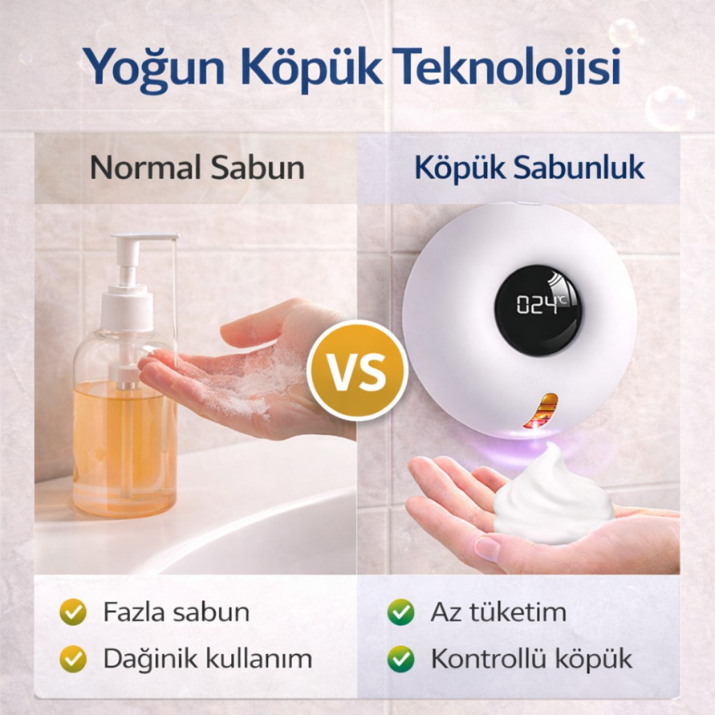 Akıllı sensör teknolojisi sayesinde sabunluğa dokunmadan sadece elinizi yaklaştırmanız yeterlidir. 0.25 saniyede hızlı algılama özelliği ile anında yoğun köpük verir ve maksimum hijyen sağlar.