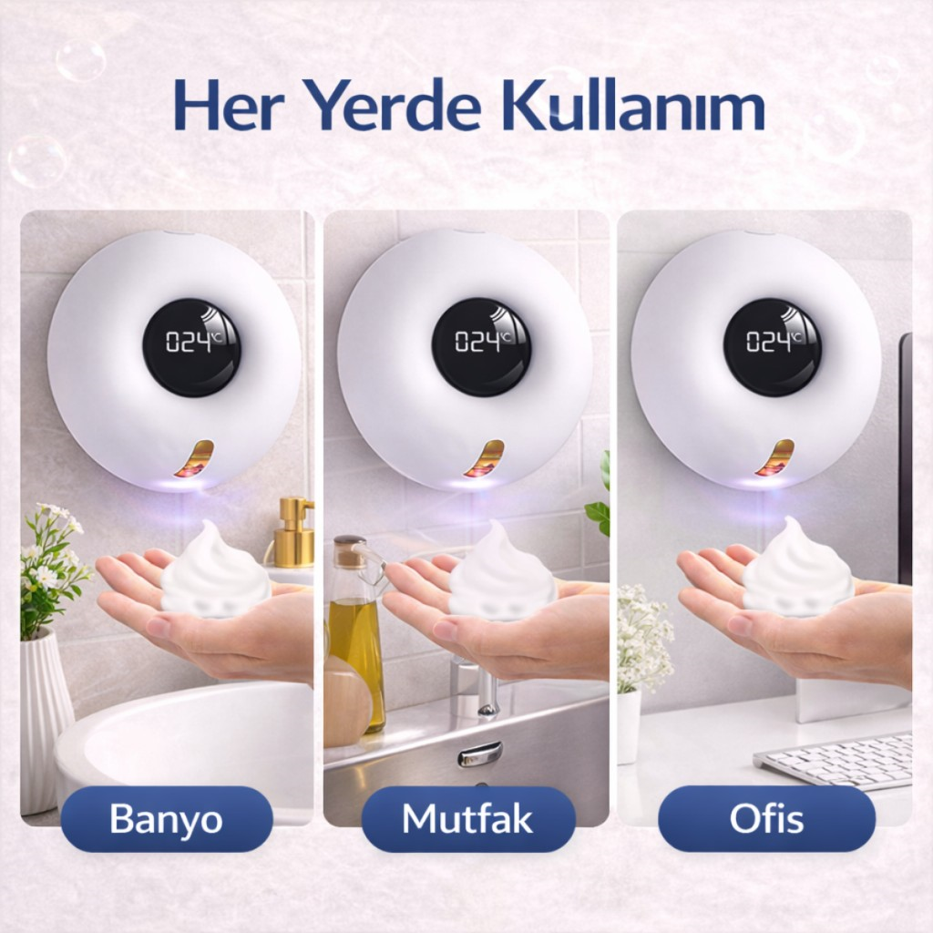 Polham Akıllı Sensörlü Köpük Makinası 280ml | 0.25s Hızlı Sensör | Şarjlı | Dijital Ekranlı Otomatik Sabunluk